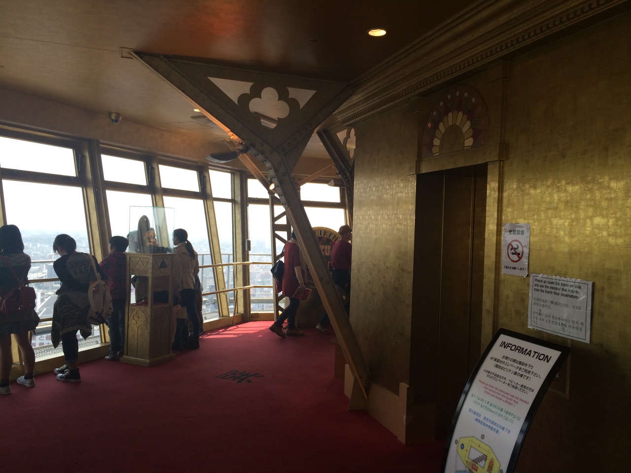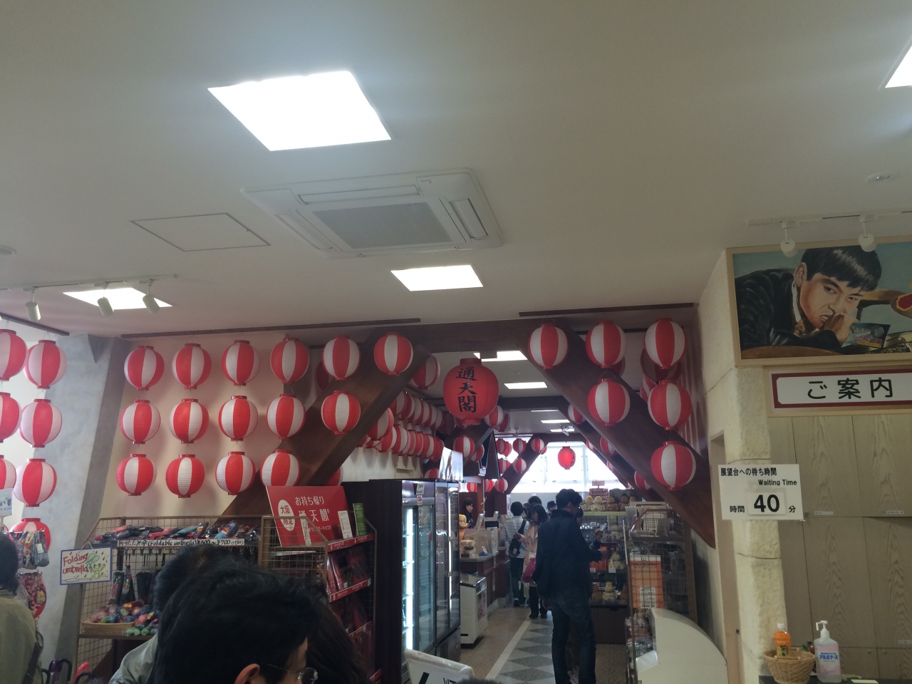 通天閣にのぼりました。土曜日だったので結構混んでいて、通天閣の展望台は40分くらいの行列でした。