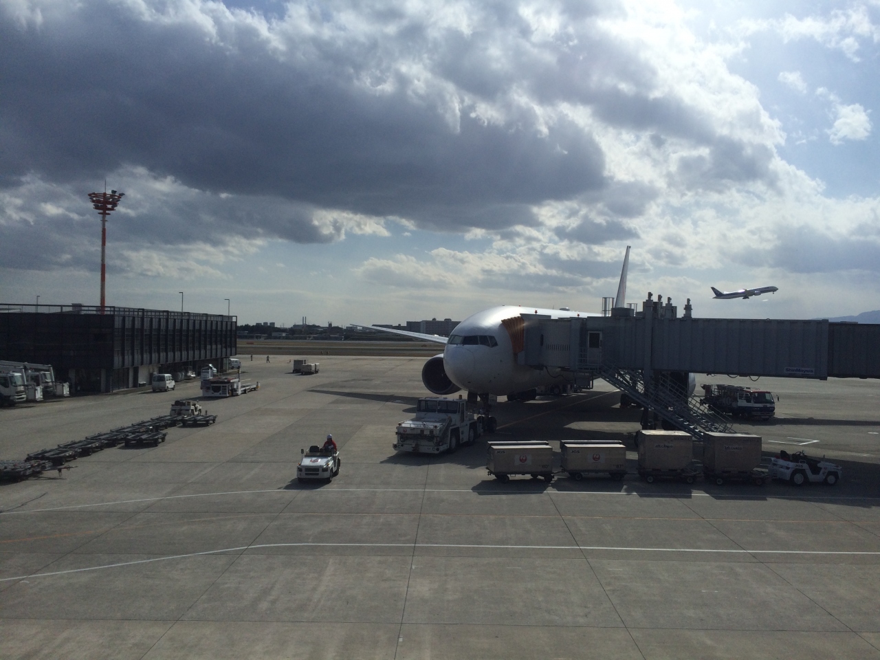 関東から大阪に行くのは新幹線で行く人が多いと思いますが、やっぱり飛行機だと早いですね。伊丹空港は大阪の市街地からも近いし便利です。