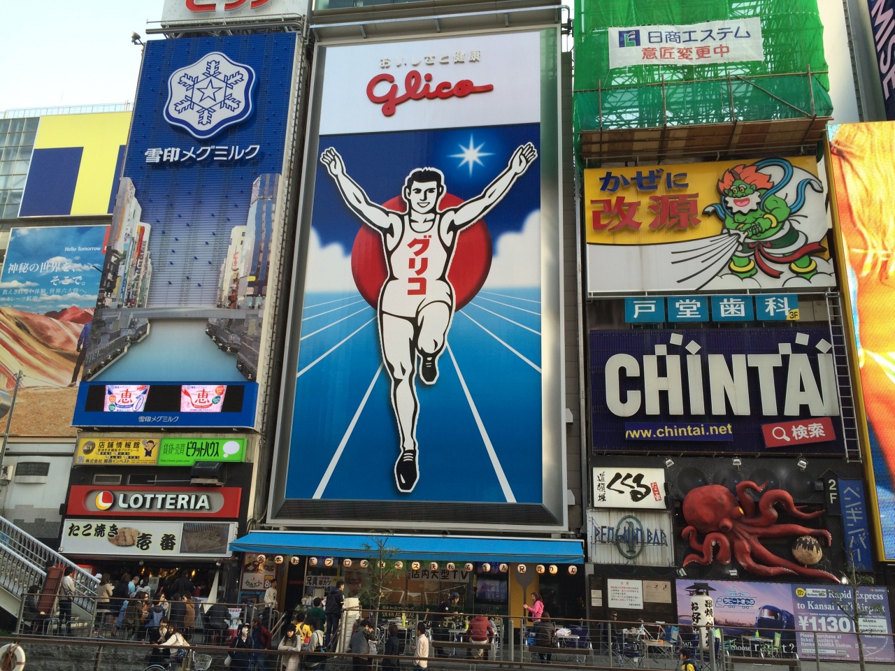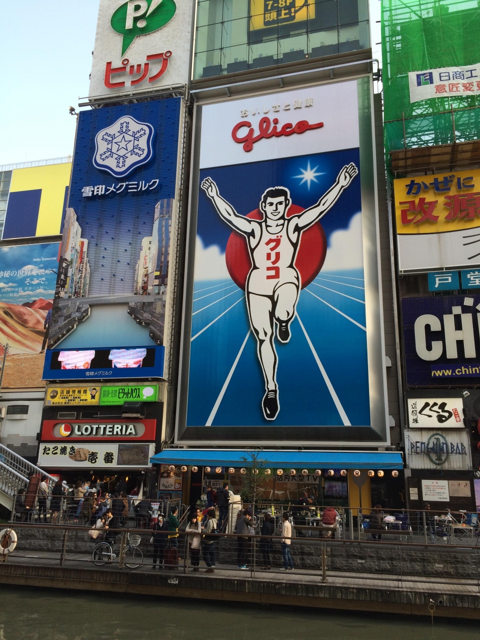 大阪観光に来たら、このグリコの派手な看板と記念撮影は外せません。
