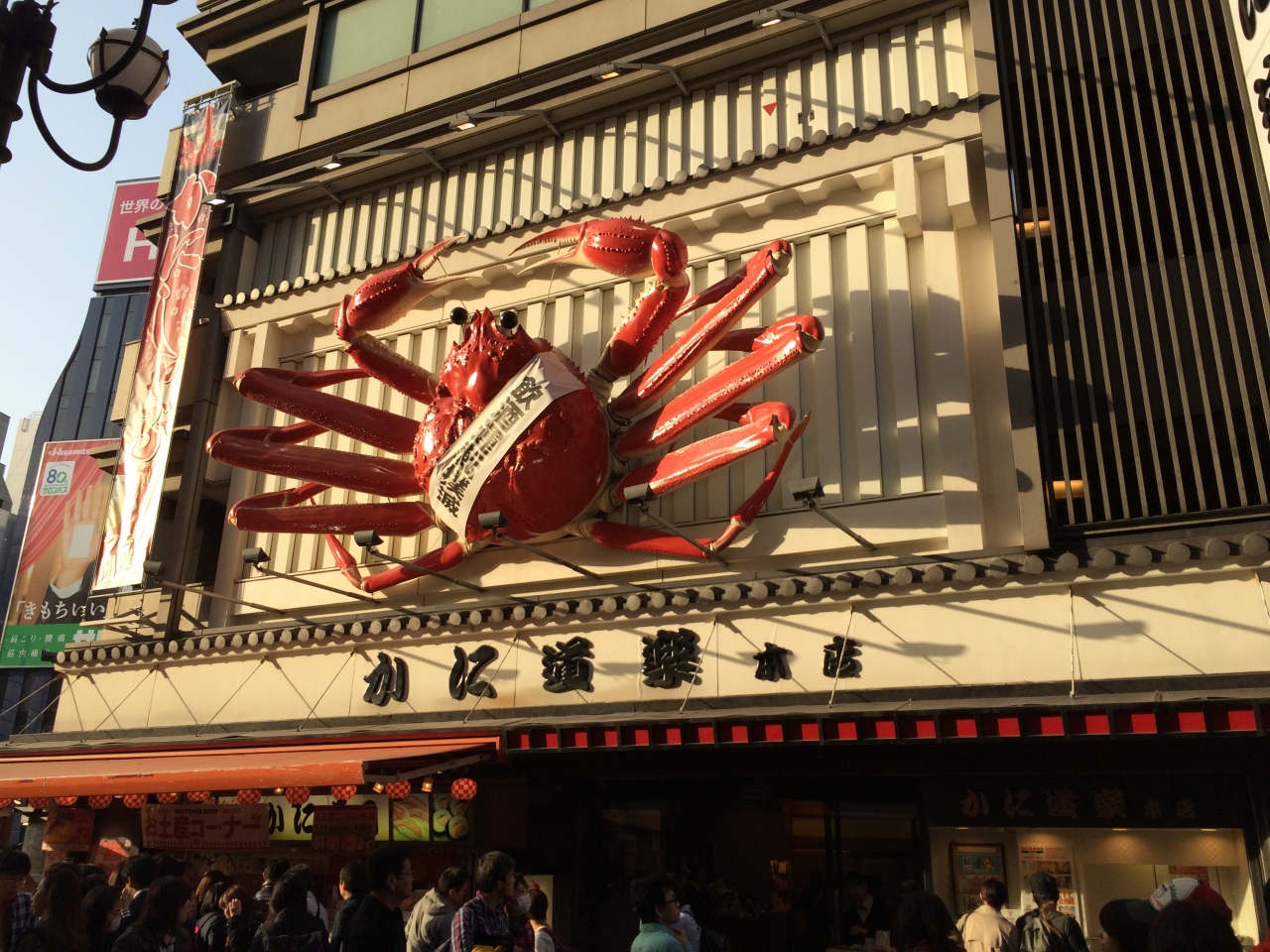 道頓堀には有名な名物看板が沢山あります。グリコの看板やくいだおれ太郎、かに道楽のカニの看板など。大阪に観光に行ったら是非見ておきたいスポットだと思います。