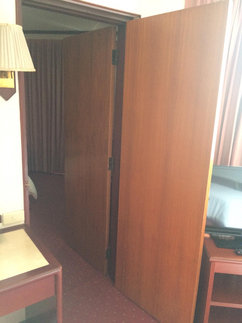 両方の部屋がつながっている2部屋でした。それぞれの部屋の中にある扉を鍵開けるとつながります。ダブルベットの部屋が2部屋でした。