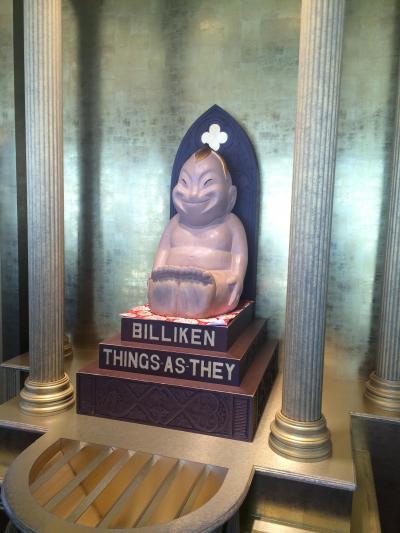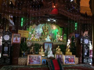 建物の中にある仏像の周りはきらびやかなイルミネーションで囲まれています。