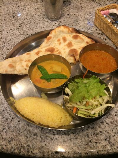 カレーは、南インドチキンキーマカレーと野菜(サヤエンドウ)のカレーでした。