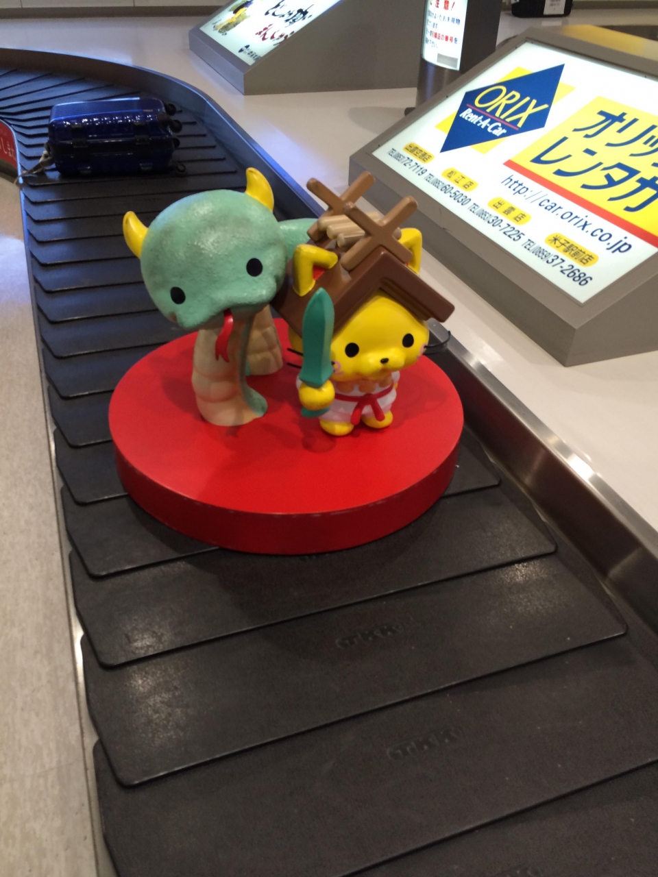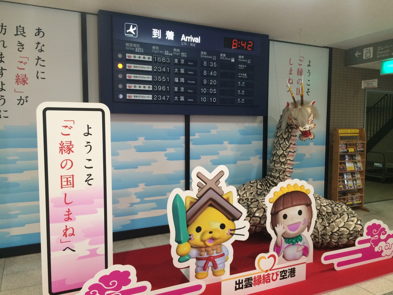 JALを利用したので、JALは鳥取・島根では出雲空港のみ就航しているので、行きも帰りもこちらを利用しました。手荷物受取所では「しまねっこ」が荷物と一緒に回っていて可愛かったです。