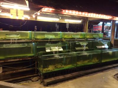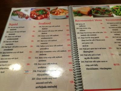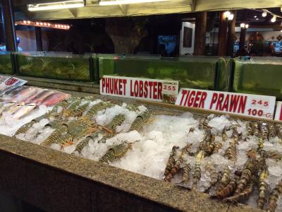 シーフード以外の料理(パッタイなど)はメニューに金額が記載されていて、シーフード(ロブスターや魚など)はメニューに金額は記載されていません。お店の入口のディスプレイにロブスターや魚が並んでいて、大きさで値段が決まってきます。好きなのを選んで調理して貰います。調理方法では値段は変わらないみたいです。