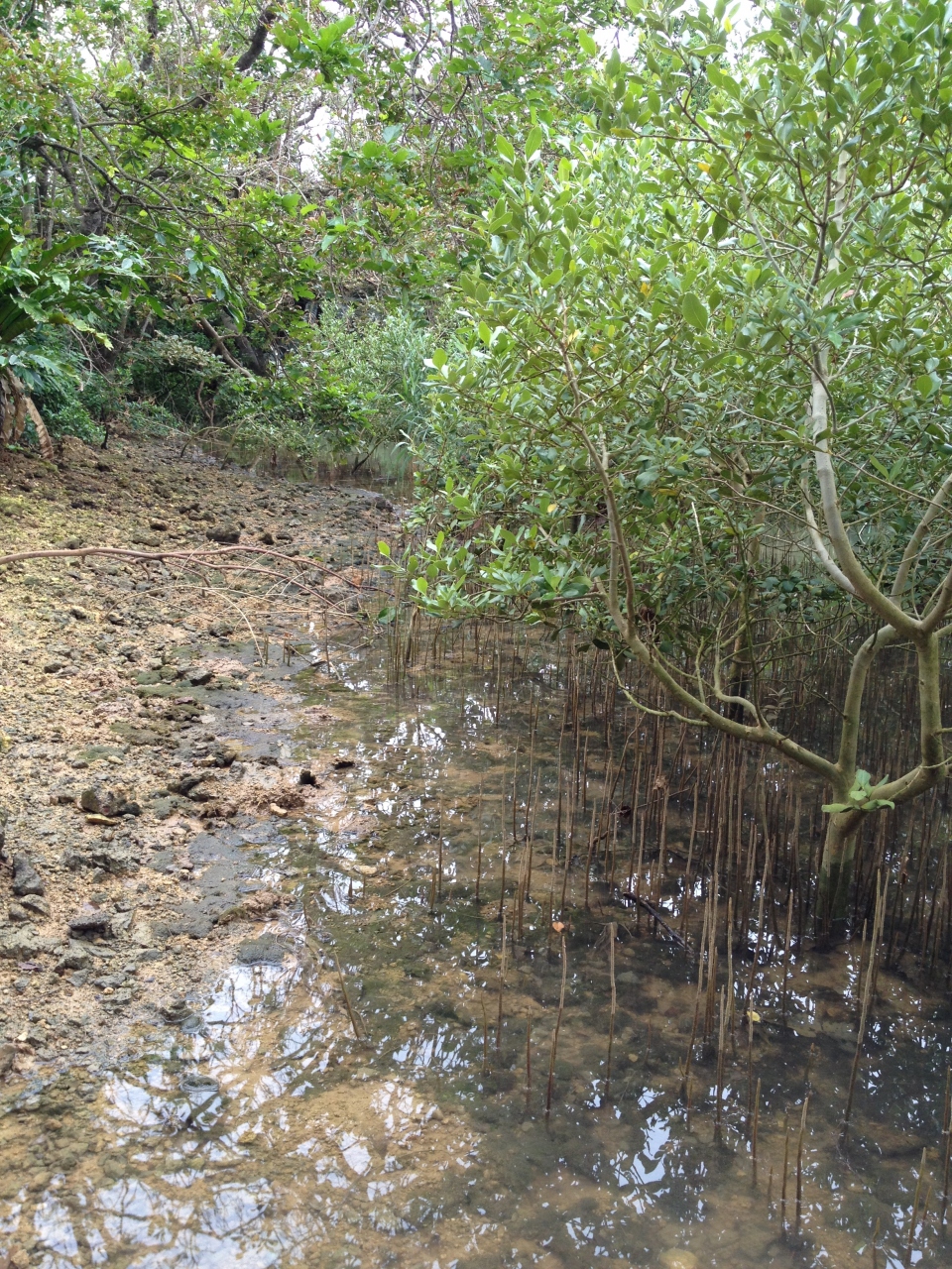 遊歩道もしっかりしているので、手軽にマングローブが楽しめます。覗くと小魚が結構泳いでいました。
