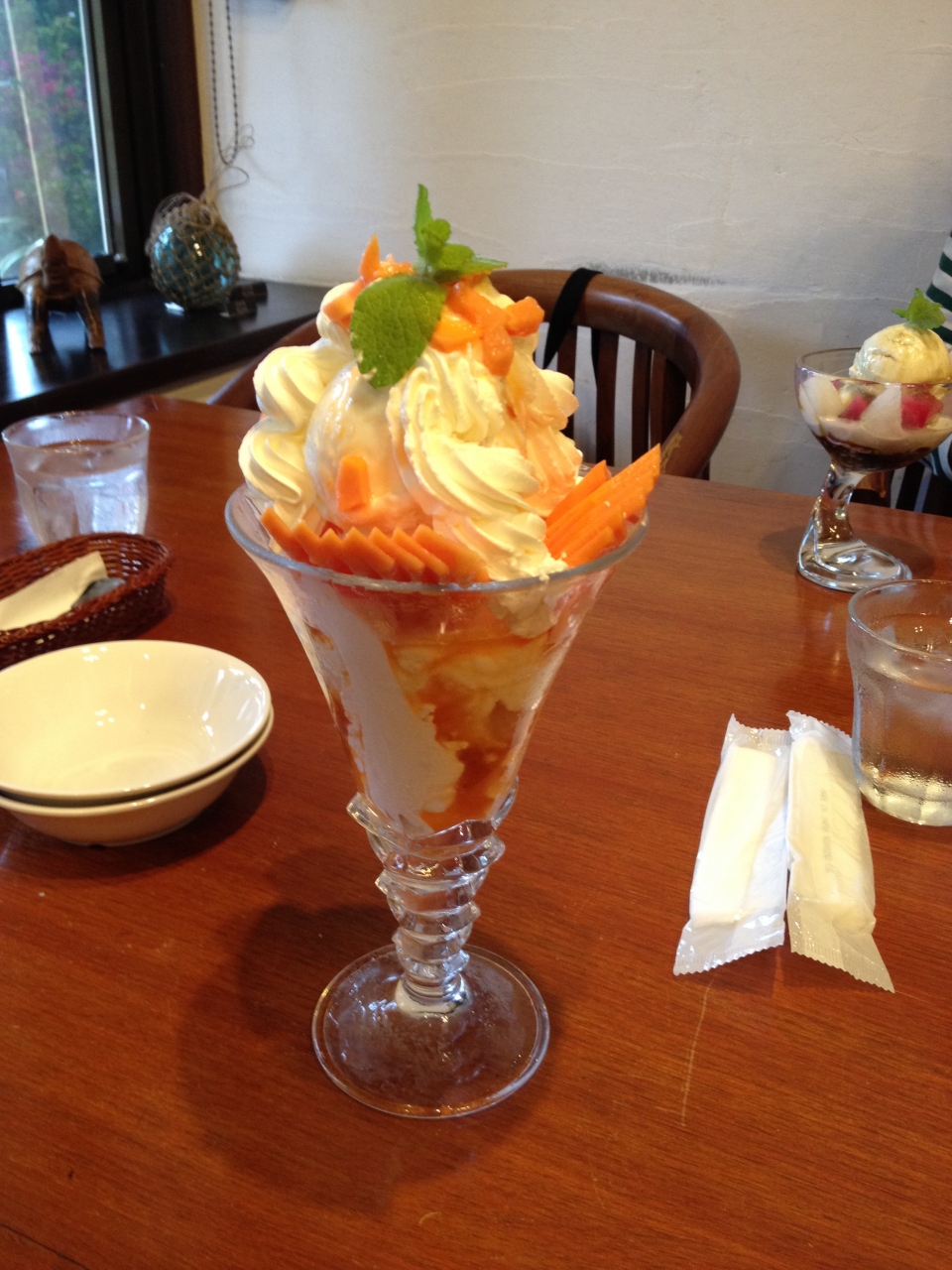 私が頼んだのは、フルーツパパイヤパフェ1200円。