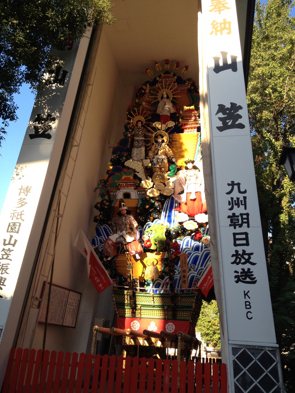 13mある山笠は近くで見るとすごい迫力があります。山笠見て参拝して気持ちよい散歩コースです。