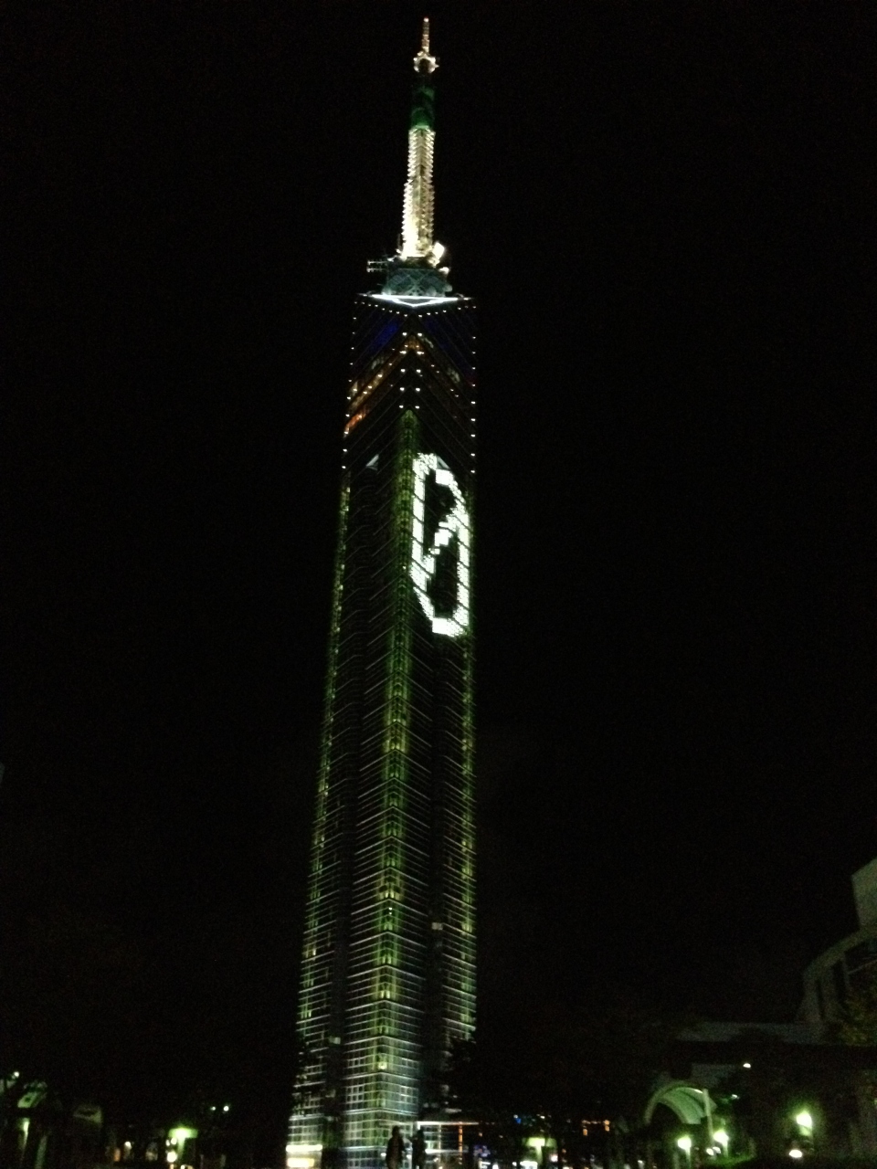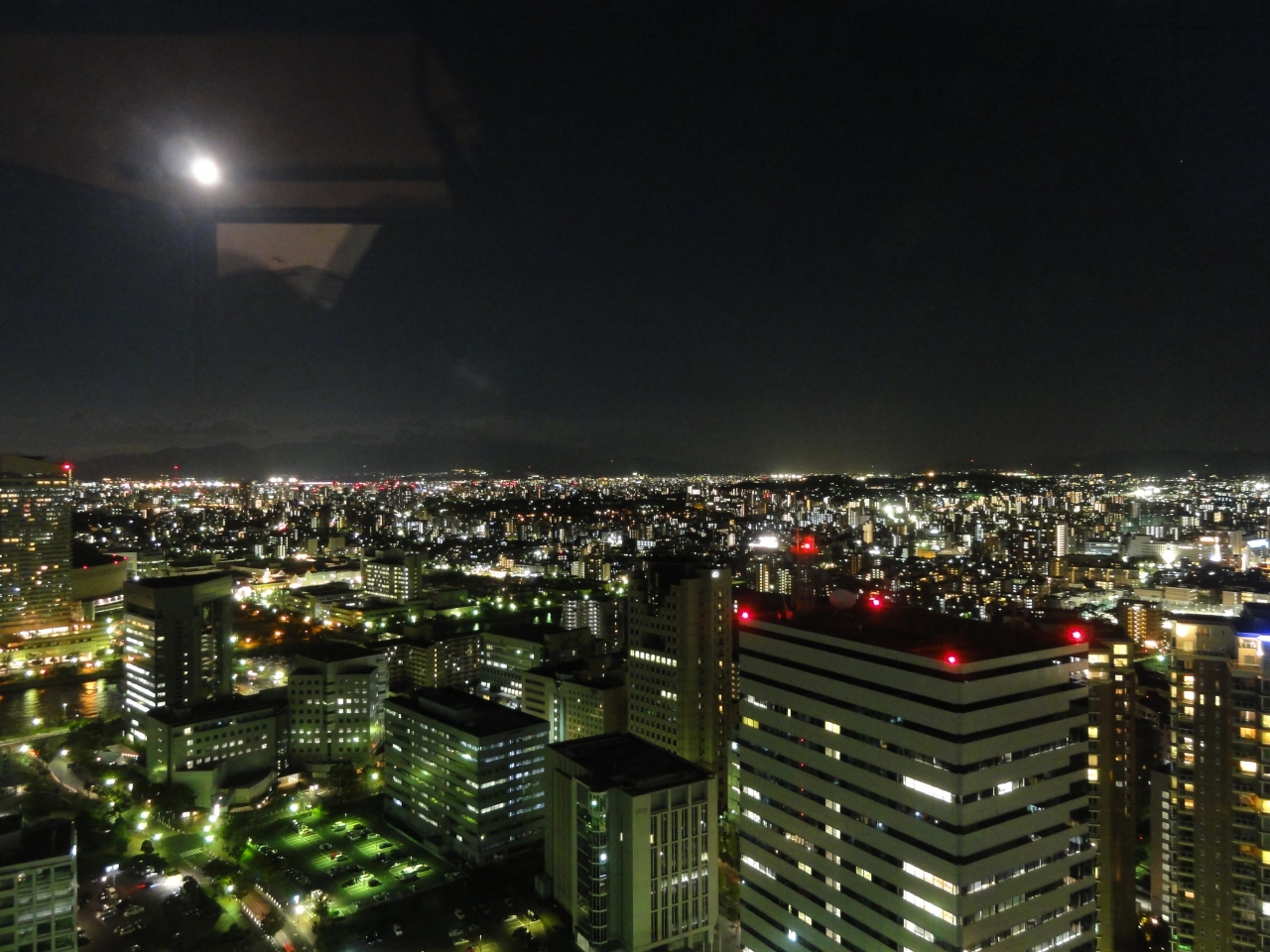 夜景を見に行きました。18時~20時に中州でもつ鍋食べて、夜景を見に福岡タワーに来て、その後また中州に飲みに行くというコースです。