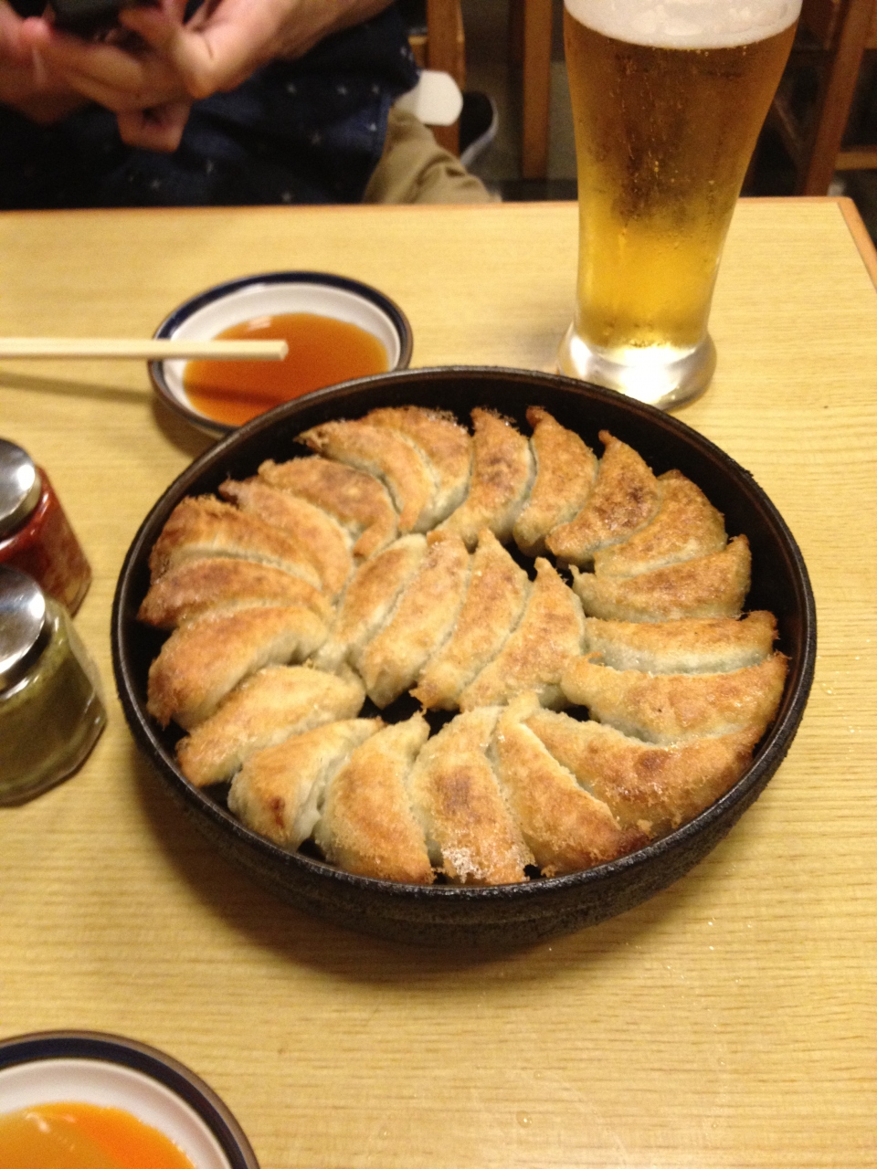 餃子は注文を受けてから、包んで焼くそうです。なので出てくるまで時間かかりますが、作りたて焼きたては旨いです!皮もパリパリ。結構何個でも食べれてしまいます。
