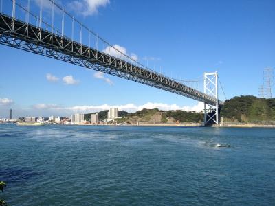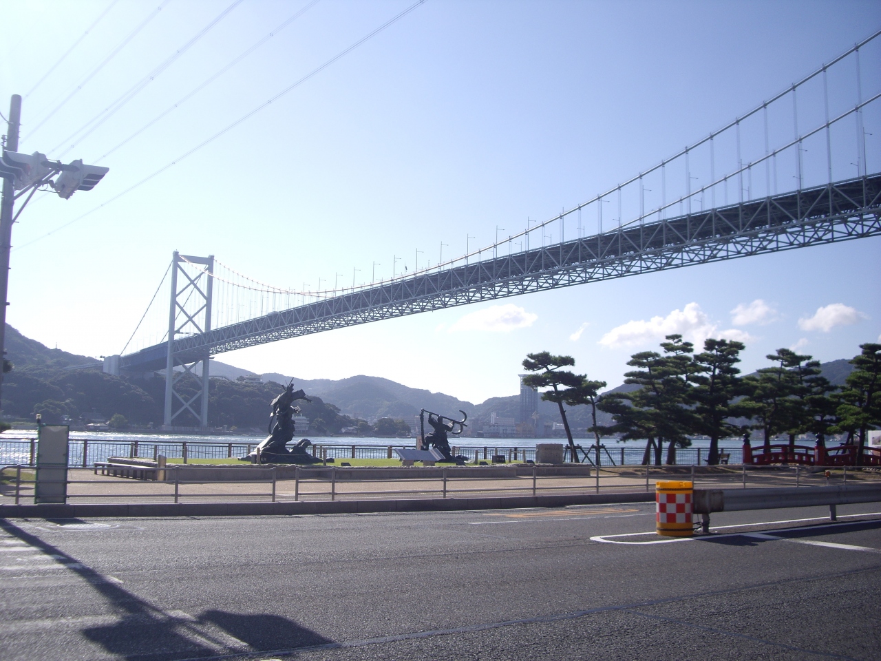 門司から関門海峡人道を通り、下関の出口を出たところに、みもすそ川公園があります。みもすそ川公園内に源義経・平知盛両雄の像が立っています。バックが関門海峡でかっこいいです。