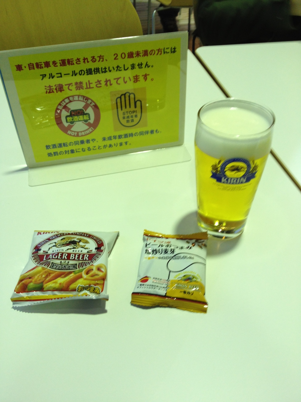 最後に試飲があります。3杯まで。種類は、一番搾り、ラガー、スタウトがありました。3杯なので一通り飲めますね。おつまみなんかも貰えます。ノンアルコールもあるので未青年でも大丈夫です。