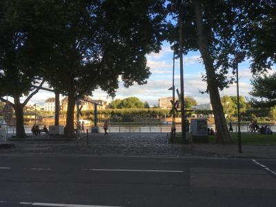 周りにはカフェや洋服・靴屋などのお店が沢山ありました。カフェの前でアコーディオンを弾いている人などがいて愉快な感じでした。
