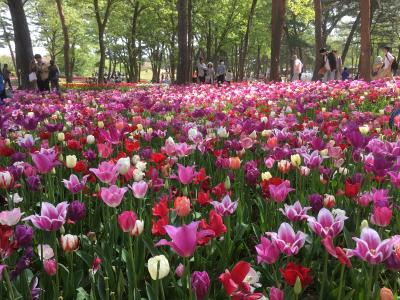 園内入ってすぐの西口エリアはチューリップが沢山咲いていました。種類も沢山あり、色とりどりで綺麗でした。