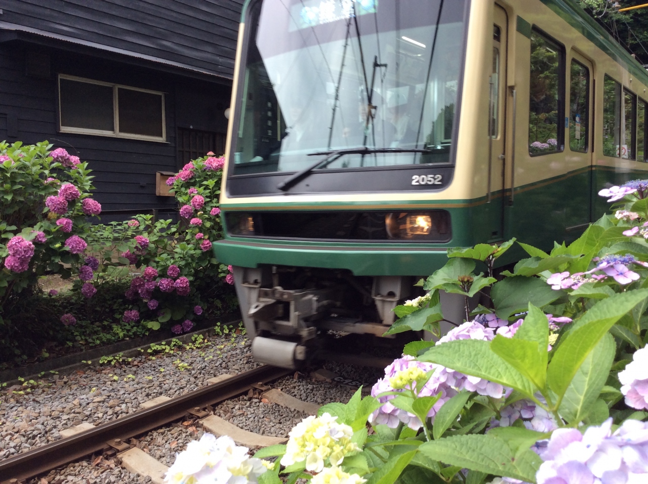 江の電と紫陽花の写真を撮る為に人がいっぱいでした。