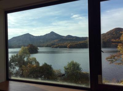 本館の湖側の部屋は窓が大きく、紅葉、湖、磐梯山が最高に綺麗でした。