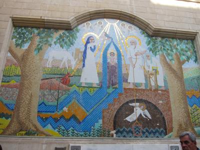 中庭的な場所には大きな美しいモザイク画や、花壇があって、綺麗です。