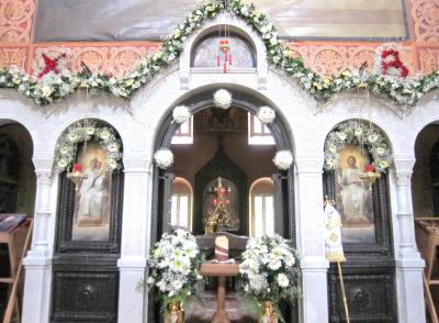 教会の中は細工の美しい壁や天井画、綺麗な色の大理石の床や柱、祭壇には美しい花がたくさん飾ってあって、とても綺麗な教会でした。- 旅行時期