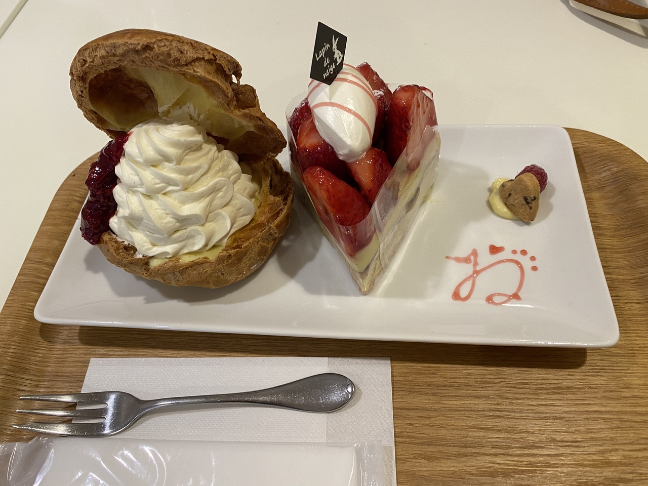味はどちらも最高に美味しくて、サクサクタルトの上のいちごが甘くて美味しく、シュークリームはクリームがしつこくない甘さで、皮はサクサクでとても美味しかったです。- 旅行時期