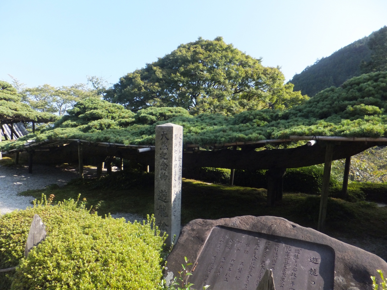 竜が横たわっているように長々と延びている五葉松(遊龍の松)は見ごたえがあります。