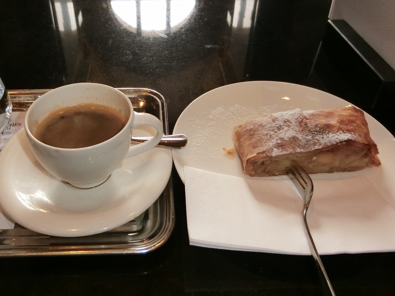 今回宿泊しましたがインペリアルトルテを食べる時間がなくて、帰国時にお土産に買いました。とってもかわいいパッケージに包まれて、持ち帰っても崩れていませんでした。帰ってからの楽しみに頂きました。7.5ユーロでした。