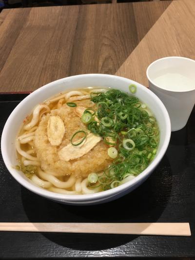 高速バスへの乗り継ぎ待ちで食べれるものを探して福岡名物のごぼう天うどん 530円