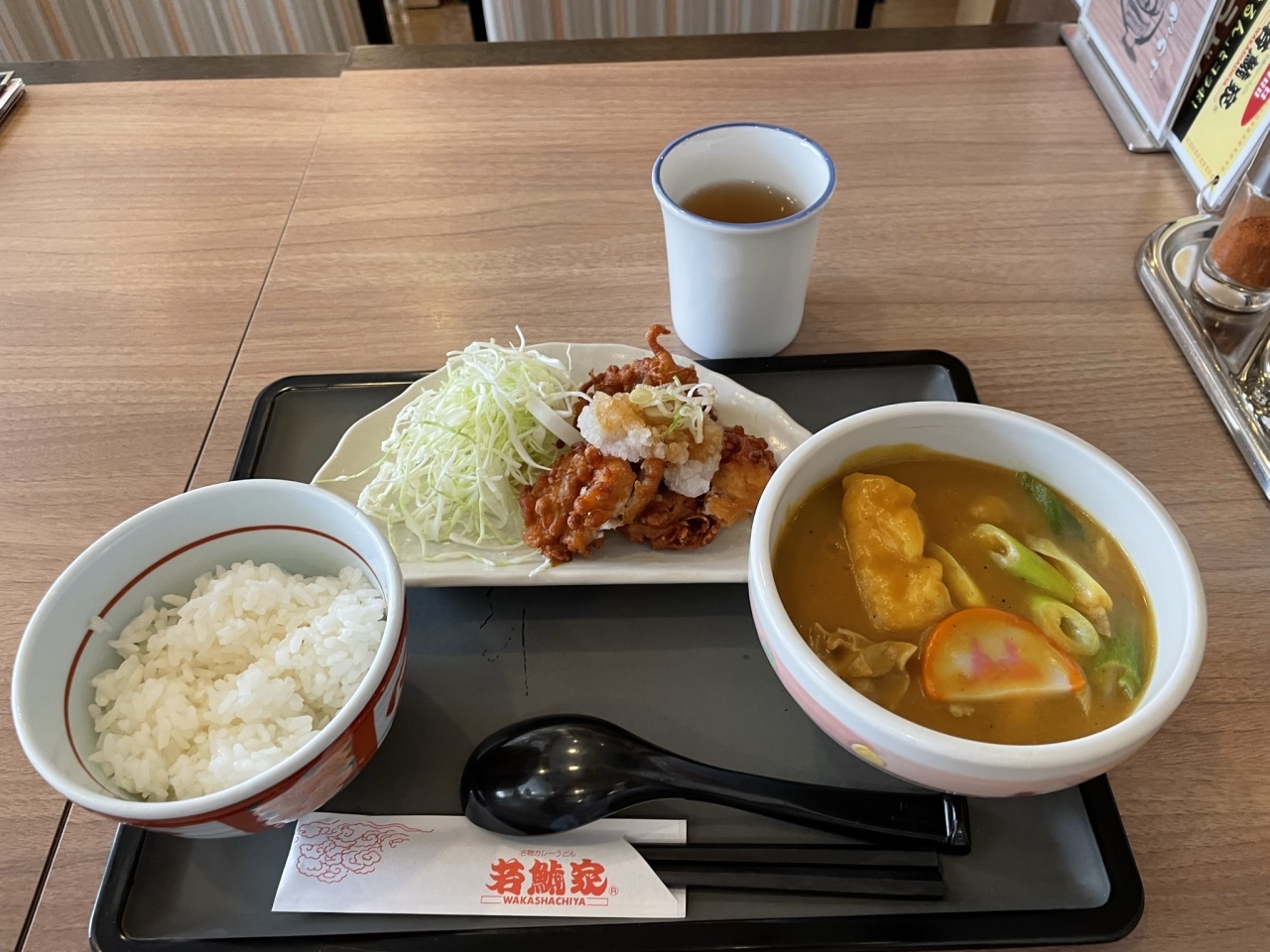 ミニカレーうどんと御飯と鶏のみぞれ揚げでした。