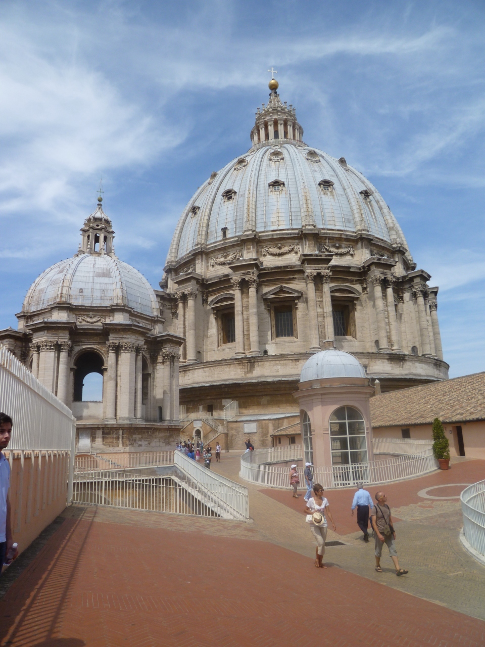 オプショナルツアーでバチカン美術館に行きました。システィーナ礼拝堂で解散でしたので、出口に気を付けました。クーポラに昇りたいなら、絵を背にして右のドアです。違う方だといったん外に出てしまい、長蛇の列に並ぶので大変だそうです。