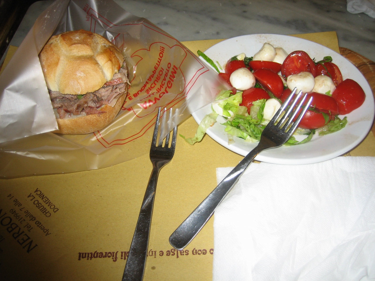 蔵物のパニーニが有名らしいです。日本円で350円くらいだったような。パンはけっこう大きくてボリュームあり。疲れで食欲がなかったのですが、蔵物の味付けがよくて食欲がわき、食べられました。