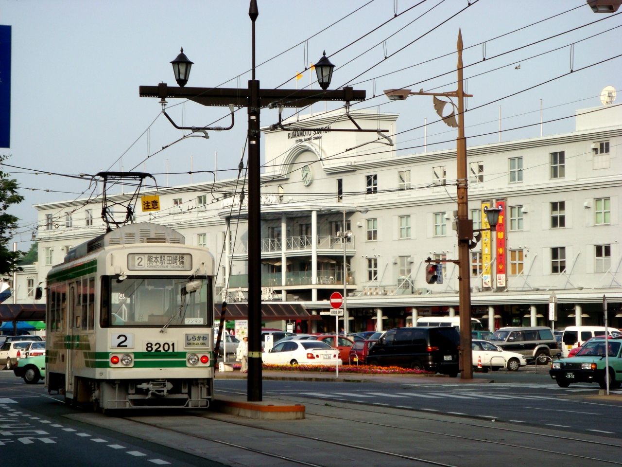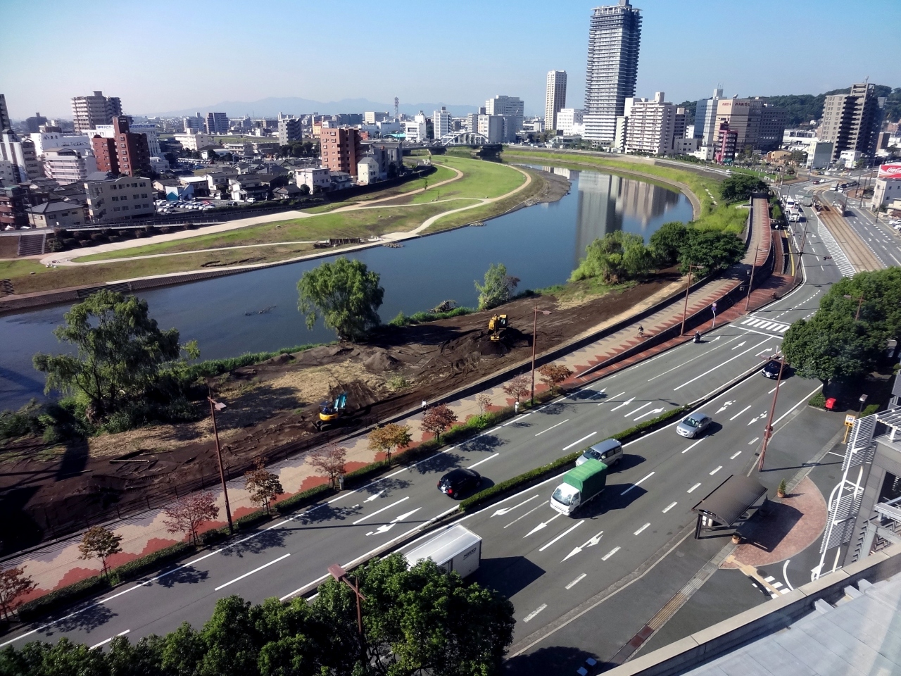 JR熊本駅から市電でひと駅目の「祇園橋」電停前の白川畔にある高層ホテルです。