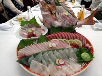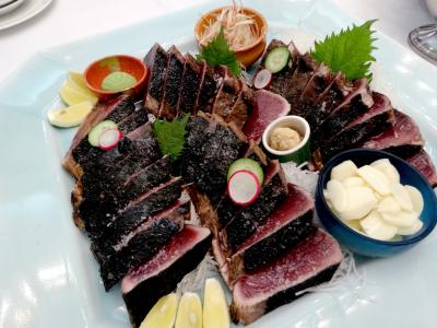 晩ご飯は宴会場で地元の皆さまとの会食だったのですが…新鮮なお魚【特に鰹の塩タタキは絶品】をお腹一杯堪能!!!