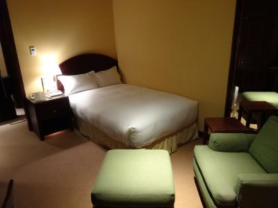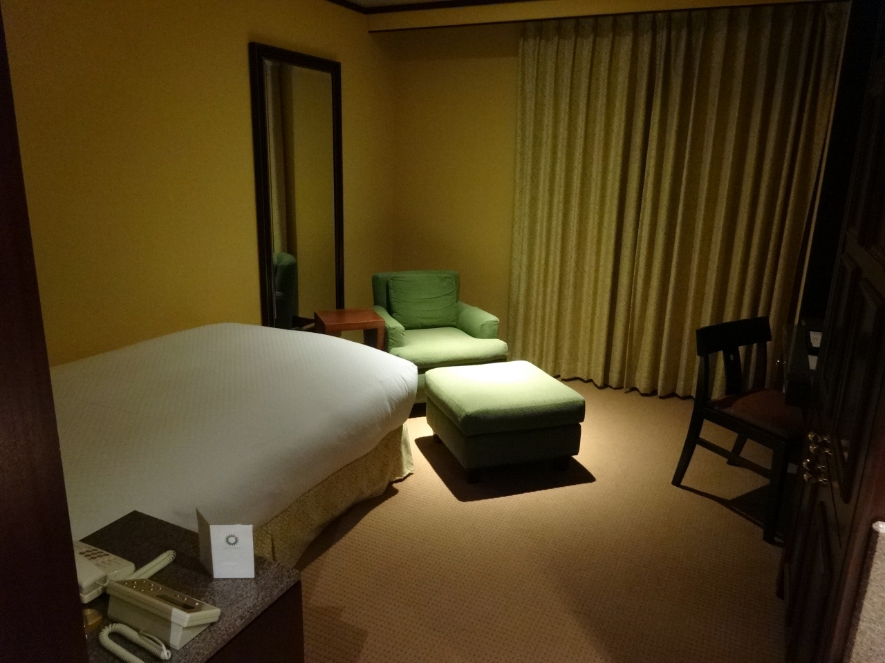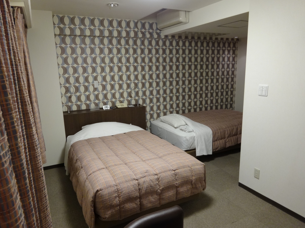 案内されたお部屋はちょっと変わったレイアウトのツインルームでしたがシングルユースの私にとっては広々快適!