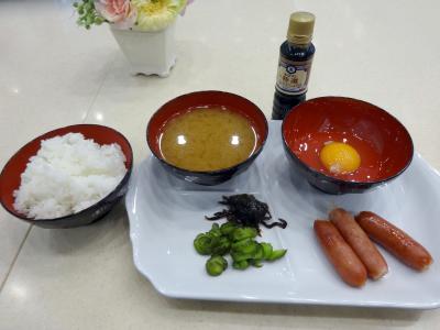朝食はコンビニで調達した生卵を持参して【玉子がけごはん】にしました(^^♪- 旅行時期