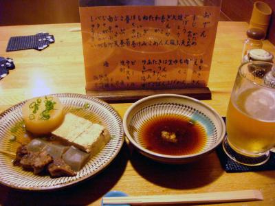 余談ですが…この日は「能古」さんというお店で「姫路おでん(生姜醤油で頂くのが姫路流だそうです)」を肴にひとり晩酌(^_^)v