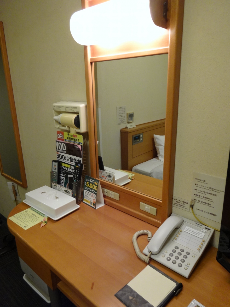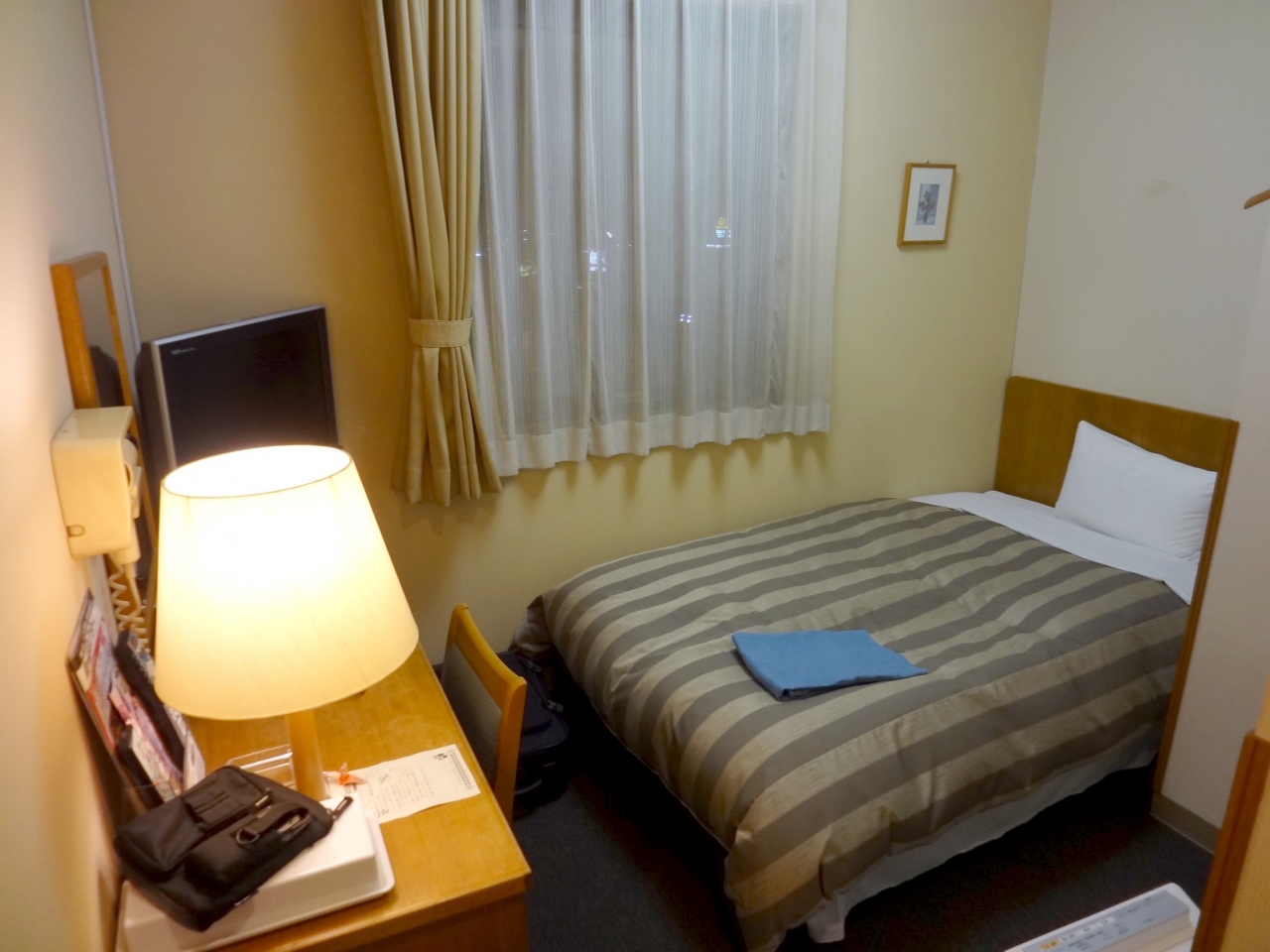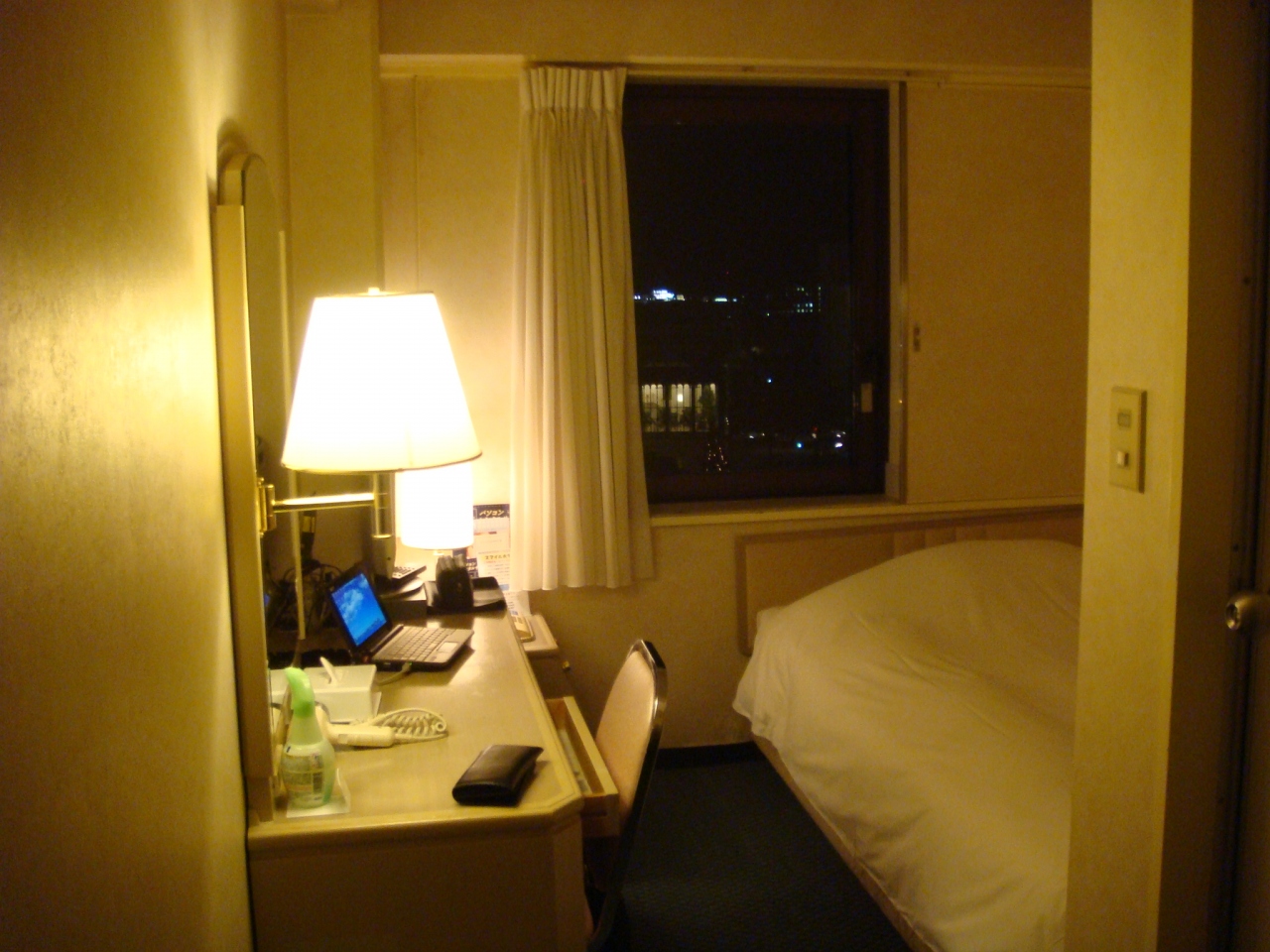 館内は清潔感に溢れており、お部屋も外光がたっぷりと入る大きい窓・ライティングデスクとビジネスユースの我々にとっては申し分ない居住性です。