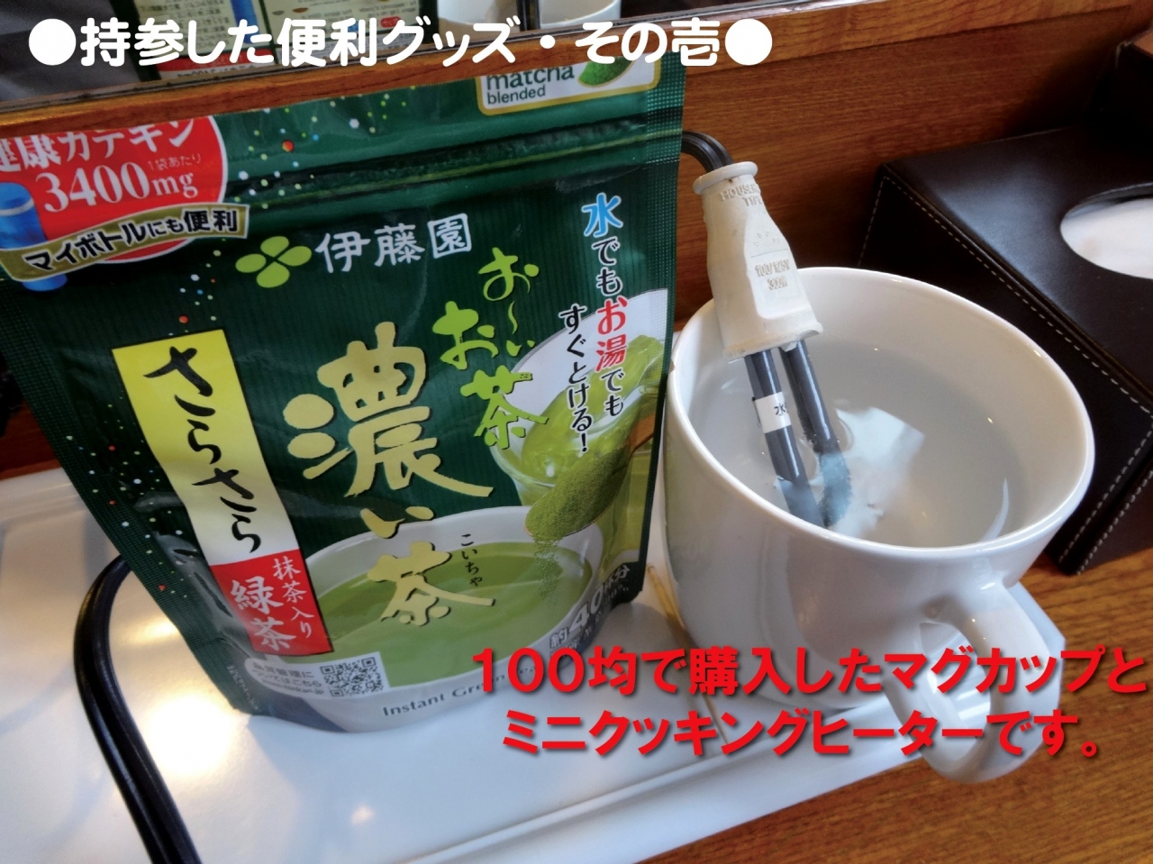 前回宿泊させて頂いて…湯沸しポット/湯呑類が無いこととバスルームのシャワーホルダーの位置が高いことが判っていたので、今回は諸々を持参しました(^^ゞ