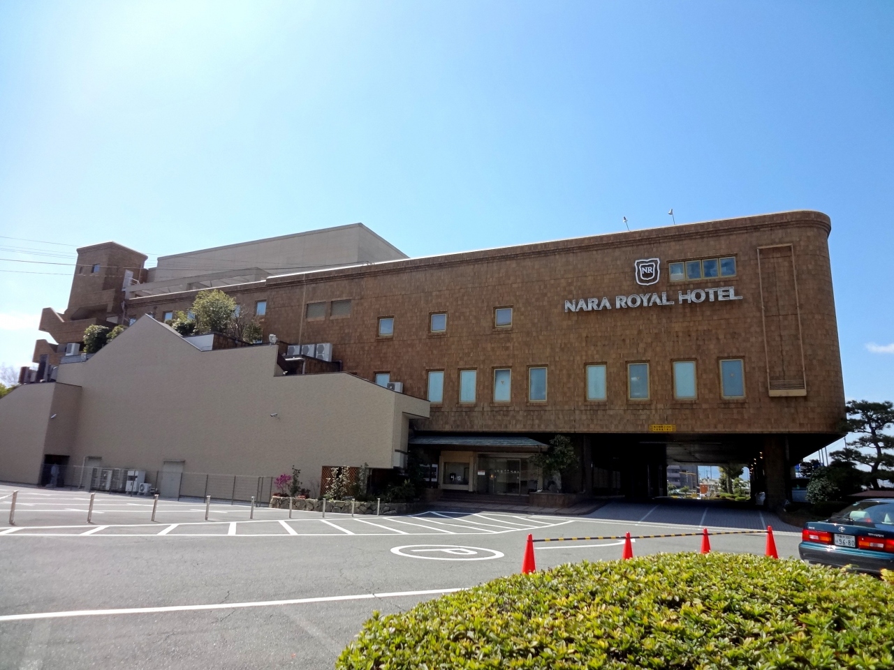 近鉄奈良線「新大宮」駅から徒歩で約700mほどの奈良バイパスに面した立派なホテルです。