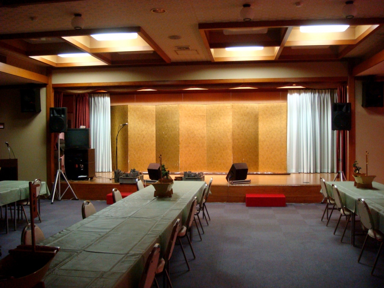こちらの宴会場でのお仕事のために音響機材を持参してお邪魔させて頂きました。