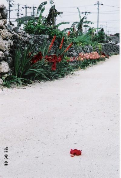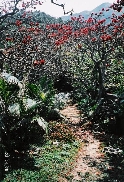 石垣島内の米原のヤエヤマヤシ群落の公園内に寄ってみた。でいごの花が見事...