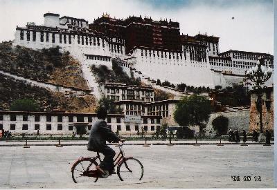 ポタラ宮。ついに来た・・・・。その前に漢民族と思われる男性が自転車に乗...