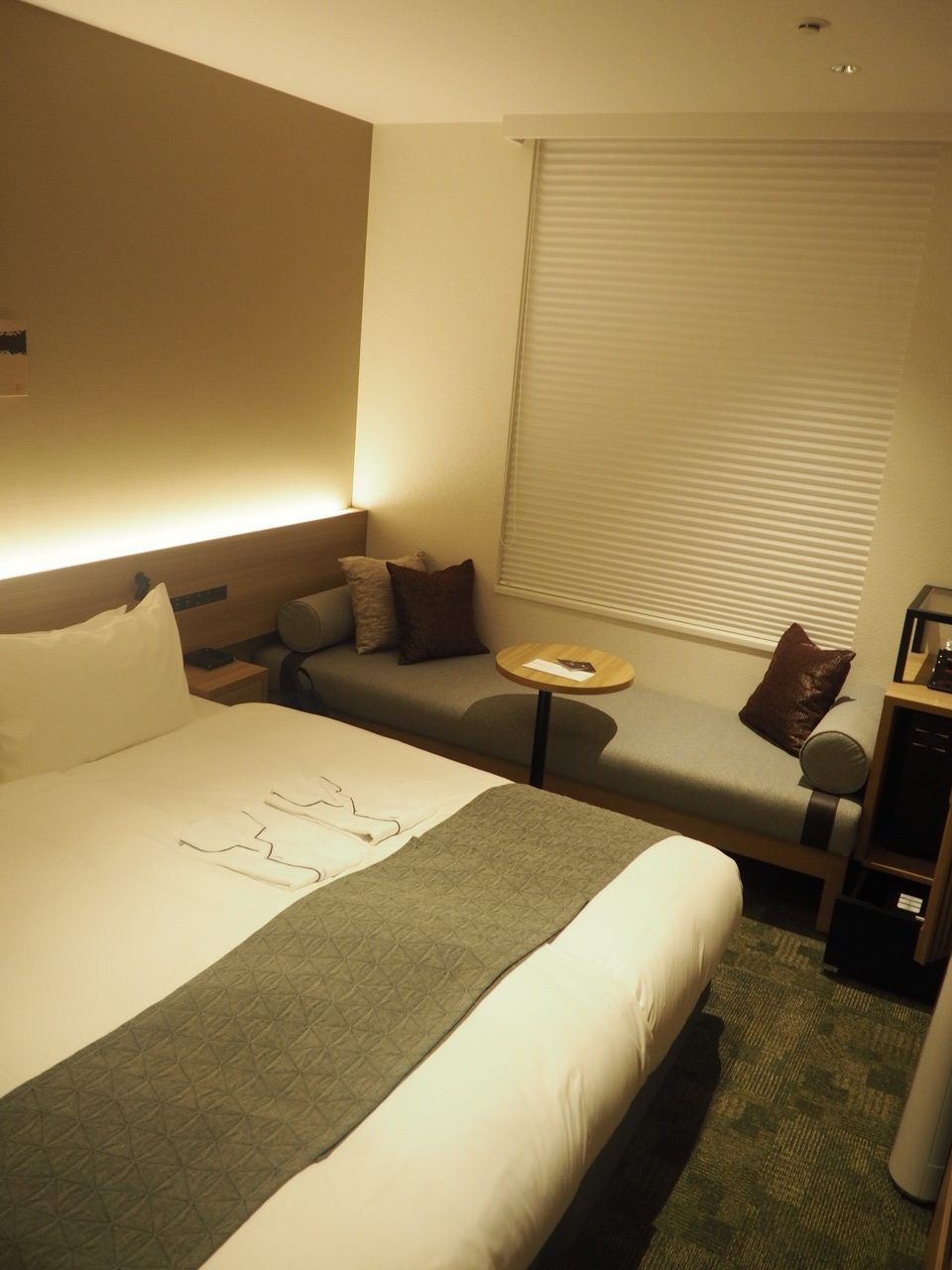 ハリウッドツインルームなので部屋は小さめで、あまり期待していなかったのですが、空間の使い方が絶妙でソファも広く添い寝の子連れで行きましたがかなりゆったり過ごすことができました。