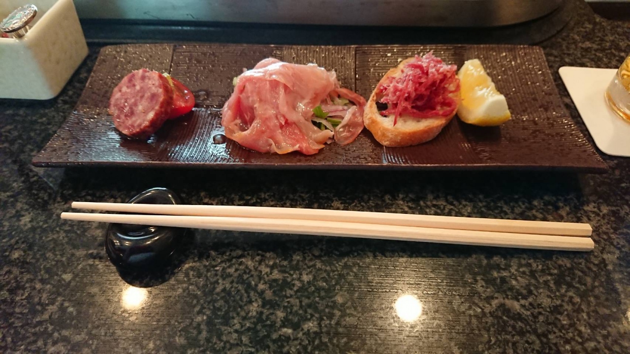 前菜の生ハムやコンビーフが絶妙な味付け。