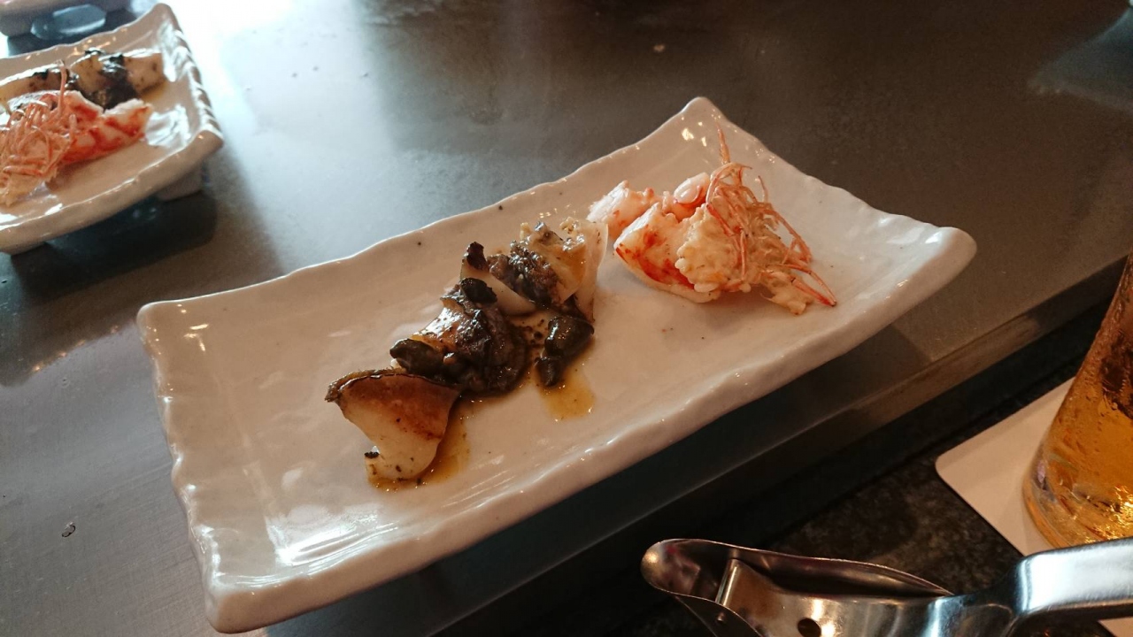 そのあ?とは車エビ、鮑と続きます、鮑は肝を使ったソースが鮑を引き立たせ美味しかったです。