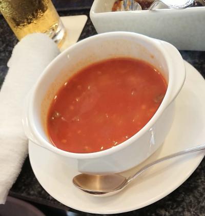 スープは暖かいトマトスープでした、欲を言えばこの時期ですから冷製のスープが良かったかな~
