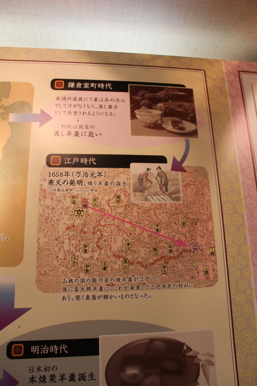 旅行記に羊羹はなぜ「羊」を使うかなど説明を書きましたが、甘味の輪の代表の羊羹の歴史を学べます。(一応下記で紹介します。