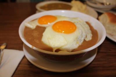 テリヤキステーキ、ロコモコ、シュリンプカレーを食べました。