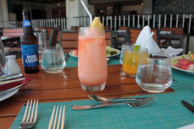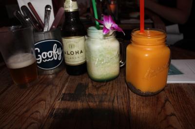 家内はビール、娘はトロピカルカクテル、私はオーガニックマンゴのジュース。