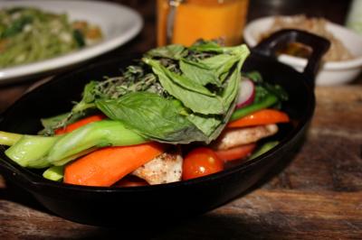 ランチはメインディッシュ選び、サラダバー食べ放題又は1回のコース選択。