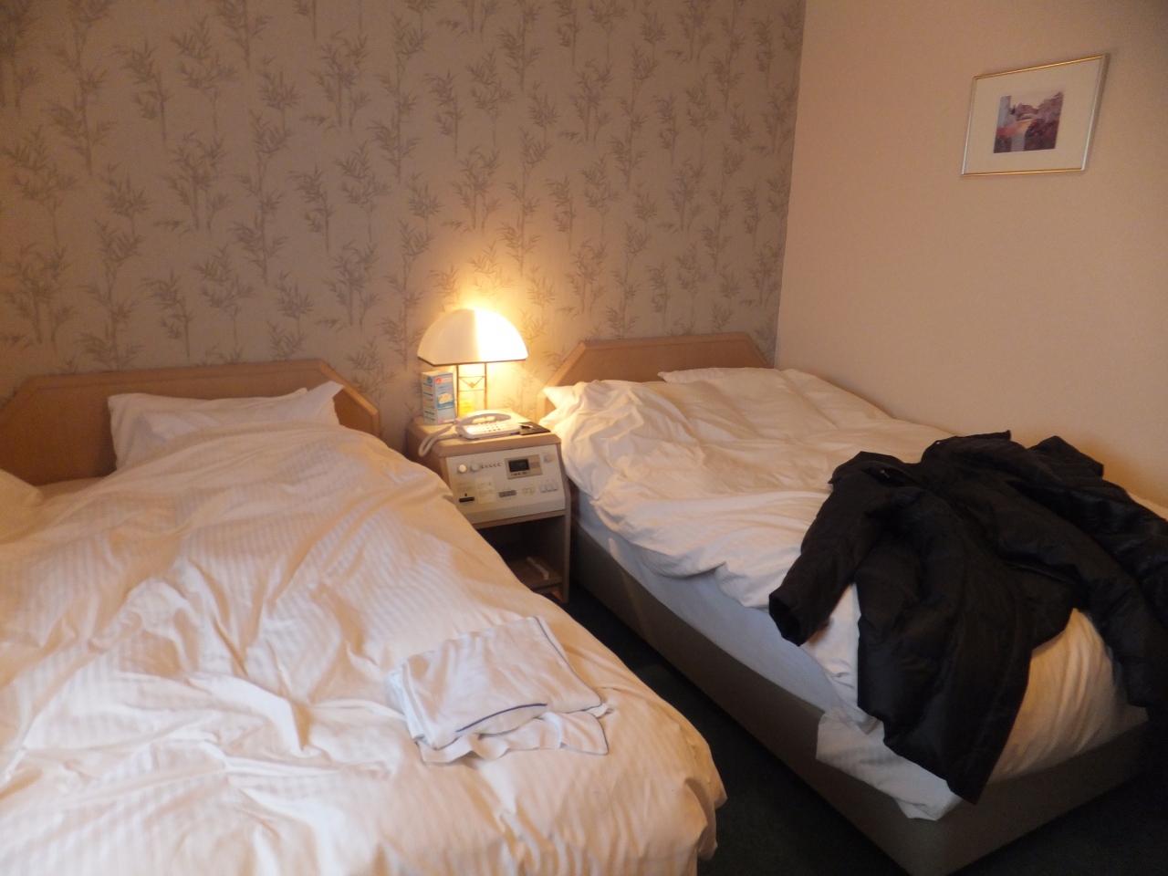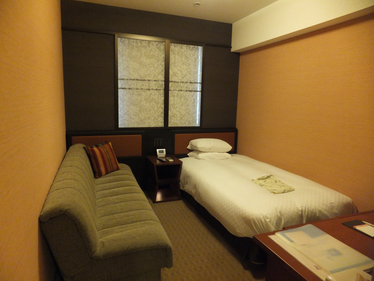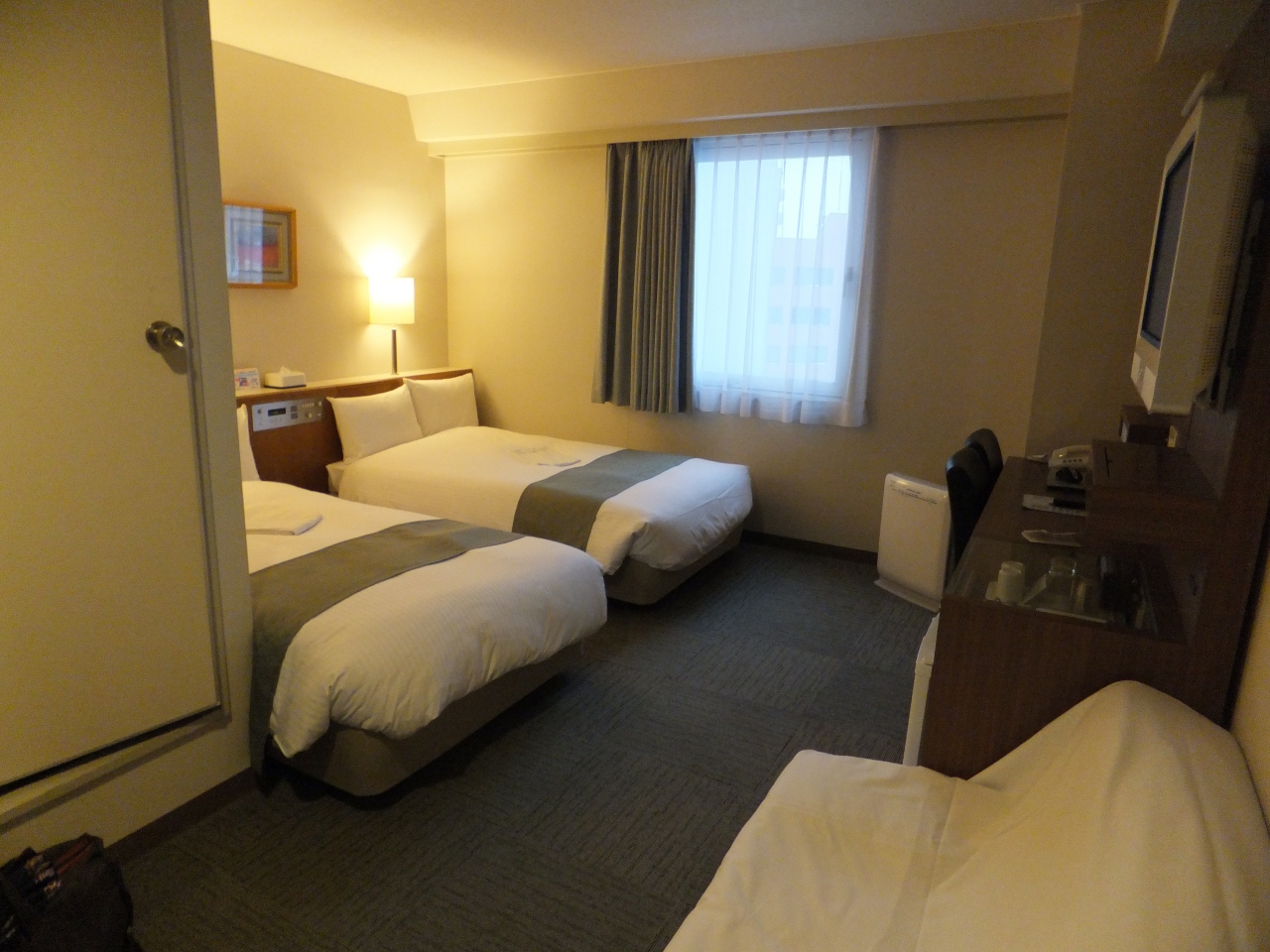 - 12階の東山側ツイン部屋は広すぎもせず狭すぎもせずという感じ。ソファーが1つしかないのが残念です。インスタントコーヒーありますが有料です。