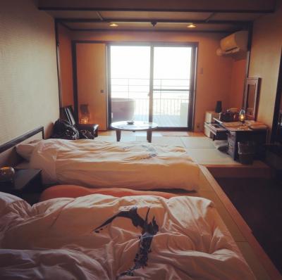 2階の露天風呂つき客室低いベッド好きだなふわふわの布団みて癒されたドラ...